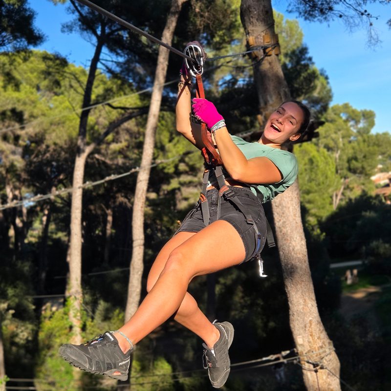 L’équipement (harnais, longes, mousquetons, poulies, crochet de sécurité) est fourni, les gants sont obligatoires sur les parcours jeunes et adultes et sont disponible à la vente.